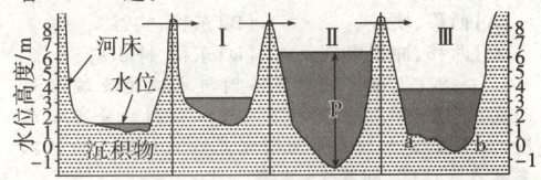 (2025·浙江宁波高二期中)下图为美国圣胡安河某处河床在一次暴雨洪水泛滥过程中河床变化示意图。该地气候干旱,上游植被覆盖率较低,流量季节变化较大,河床有深厚的沉积物层。P为此次暴雨洪水泛滥过程中河床最大深度。据此回答10~11题。