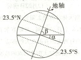 (1)在下图中,标出黄道面、赤道面和黄赤交角(∠α)的数值,用“■”标注有太阳直射现象的范围。