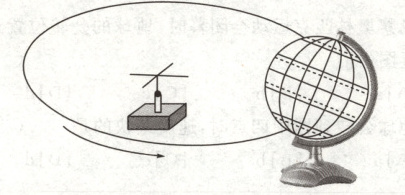 下图为小明同学演示的地球公转示意图(十字架代表太阳光线)。据此回答1~2题。