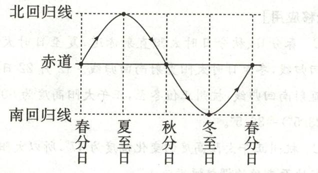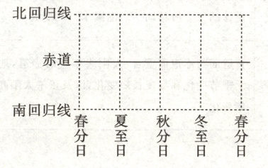 (2)请在下图中标出二分二至日(北半球)太阳直射点所在位置与移动方向,并用平滑曲线连接起来。