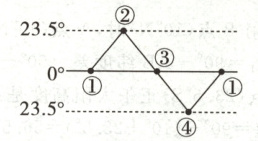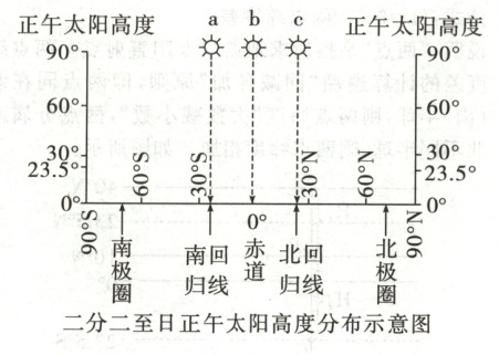 [画图] 请在下图中用折线画出二分二至日正午太阳高度的分布状况。
