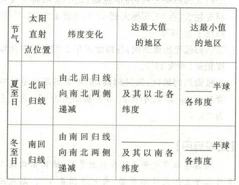 (3)正午 2.太阳直射点 北回归线 南 南回归线 北 赤道