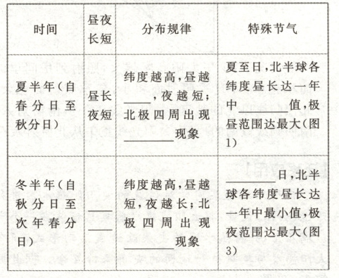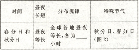 一、1.昼夜等长 2.长 极昼 最大 昼短夜长 极夜 冬至 12
