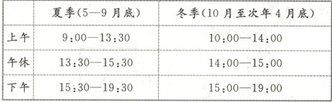 (1)上班时间夏季早于冬季;下班时间冬季早于夏季;午休时间夏季长于冬季。