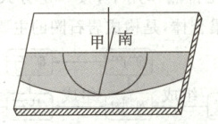 [典例] (2021·浙江 6 月选考,19~20) 我国某中学组织学生对直立物日影变化进行观测,具体做法是:先在一块平坦的地面上直立一根标杆,再以此杆直立点(甲)为圆心,以杆长为半径绘一半圆。下图为某日杆影变化图,图中阴影部分为标杆影子范围。据此回答 1~2 题。