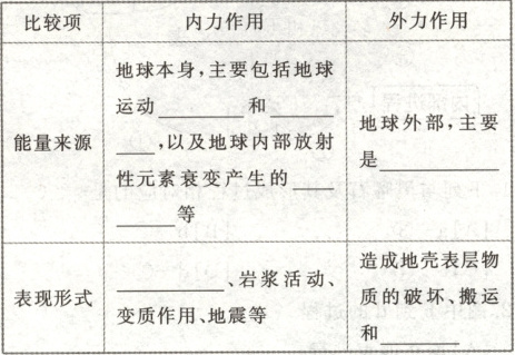 2.旋转能 引力能 热能 太阳辐射能 地壳运动 堆积