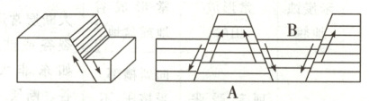 ,如我国的华山、庐山、泰山等;B 部分叫地堑,常形成狭长的凹陷
