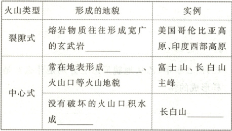 二、1.内部 2.裂隙 中心 3.高原 火山锥 湖 天池