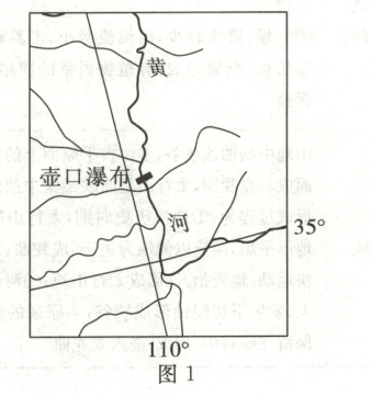 位于黄土高原秦晋大峡谷中的壶口瀑布,为黄河第一大瀑布。当黄河水流经壶口时,宽约400米的河水突然收束,狭如壶口。瀑布岩层上硬下软,两侧有若干级侵蚀阶地发育。在漫长的地质岁月中,壶口瀑布位置不断向上游移动,这种现象被称为溯源侵蚀。图1为壶口瀑布位置图,图2为形成过程示意图。