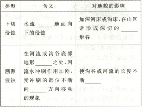 (1)下切侵蚀;溯源侵蚀。