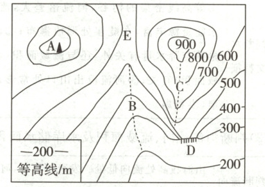 距离。上图中甲地与乙地的相对高度为 米。2. 等高线地形图