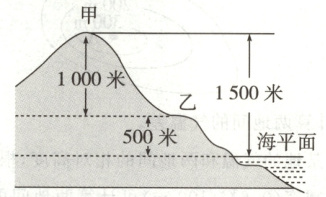 米,乙地海拔为 500 米。(2) 相对高度:一个地点高出另一个地点的