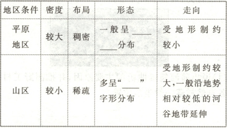 相关的各种设施。(2) 地形对聚落的影响(以我国村落为例)。