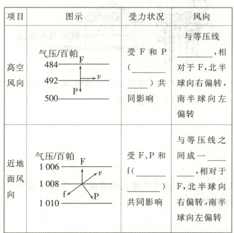 ,北半球向右偏转,南半球向左偏转。(3) 摩擦力:与风向