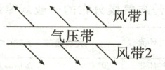 1.D 从图中可以看出,该气压带两侧的风向南北两侧吹,说明该气压带为高压带;该气压带两侧都有风带且风向不同,则该气压带为南半球的副热带高气压带,D正确。