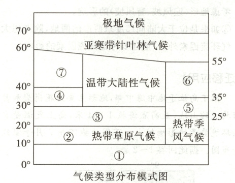 [思考] 气候类型分布模式图体现了形成气候的主要因素是什么?
