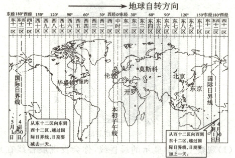 小时。③ 在同一日期内,东早西晚。每往东1个时区,区时早1小时(即加1小时);每往西1个时区,区时晚1小时(即减1小时)|