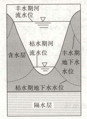 (1) 分析黄河下游河水与地下水之间的关系及原因。