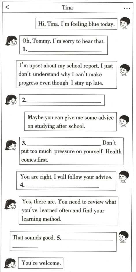 1. What’s up? /What’s the matter? 2. I’m sorry to hear that. 3. Well. /OK. 4. Are there any good ways to learn well? 5. Thank you very much. /Thanks a lot.