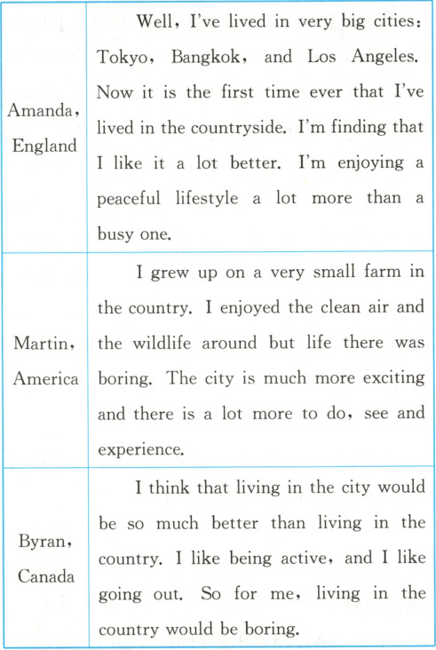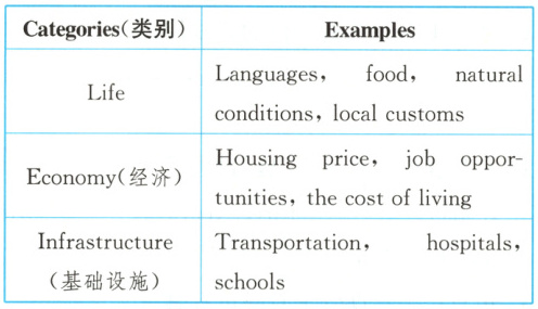 1. Daily routine, values and people living and working in these areas. 2. It’s enjoyable and peaceful. 3. Natural conditions. 4. Changsha, Kunming and Chengdu. 5. Transportation. Because with convenient transportation, I can go anywhere I want to go easily and I don’t have to worry about spending too much time on the way.(言之有理即可)