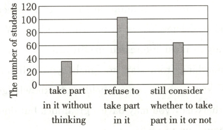 ① About seventeen percent of the students have decided to take part in it without thinking while more than fifty percent of them refuse to take part in it and the rest of them are still considering whether to take part in it or not.