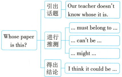 根据题干所给内容可知,写作时,应首先引出话题;然后根据提示内容进行描写,应用表猜测的情态动词 must,can't,might,could 等进行描写;最后表达自己的推测。文章应以第一人称和第三人称为主。