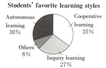 Our school did a survey among 1,000 students about their favorite learning styles. Here are the results. ① 35% of the students like cooperative learning best while 30% of them prefer autonomous learning. The percentage of the students who like inquiry learning is 27% and 8% choose other learning styles.