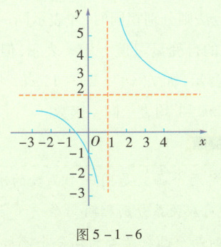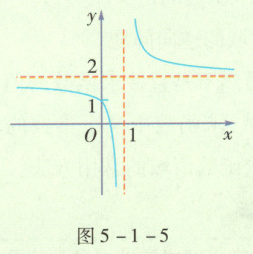 (1)$y=\frac {1}{x-1}+2$相当于将函数$y=\frac {1}{x}$的图像向右平移1个单位长度,再向上平移2个单位长度,如图5-1-5所示。