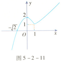 解 由题意知$f\left(\frac{1}{2}\right)=-\left(\frac{1}{2}\right)^2+2=\frac{7}{4}$,则$f(f\left(\frac{1}{2}\right))=f\left(\frac{7}{4}\right)=\frac{7}{4}+\frac{4}{7}-1=\frac{37}{28}$。作出函数$f(x)$的图像,如图5-2-11所示,结合图像,令$-x^2+2=1$,解得$x=\pm1$;令$x+\frac{1}{x}-1=3$,解得$x=2\pm\sqrt{3}$,又$x>1$,所以$x=2+\sqrt{3}$,所以$(b-a)_{\max}=2+\sqrt{3}-(-1)=3+\sqrt{3}$。