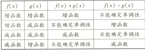 若函数 $f(x), g(x)$ 在区间 $I$ 上具有单调性,则在区间 $I$ 上具有以下性质: