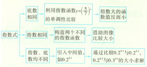(2)指数型函数的值域: 求 $y = a^{f(x)}$ 的值域时, 先求函数 $t = f(x)$ 的值域, 再根据指数函数的单调性确定函数 $y = a^{f(x)}$ 的值域即可。求值域仍要坚持“定义域优先”的原则。