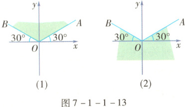 7. (知识点3·能力点1)写出终边在如图7-1-1-13所示阴影部分内(包括边界)的角的集合。