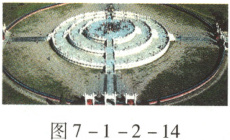 3.(2024·安徽池州一中期中·能力点1,2)(多选)北京天坛的圜丘坛为古代祭天的场所,其卫星图片可以看成一个圆形,如图7-1-2-14所示,如果将其一分为二成两个扇形,设其中一个扇形的面积为$ S_{1} $,圆心角为$\alpha_{1}$,剩余部分扇形的面积为$ S_{2} $,圆心角为$\alpha_{2}(\alpha_{1}<\alpha_{2})$,当$ S_{1} $与$ S_{2} $的比值为$\frac{\sqrt{5}-1}{2}\approx0.618$时,裁剪出来的扇形看上去较为美观,那么()。