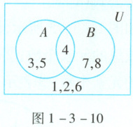 方法二:$A\cap B,A\cup B,A\cap \complement_U B$求法同方法一。$(\complement_U A)\cap (\complement_U B)=\complement_U(A\cup B)=\{ 1,2,6\},(\complement_U A)\cup B=\complement_U(A\cap \complement_U B)=\{ 1,2,4,6,7,8\}$。