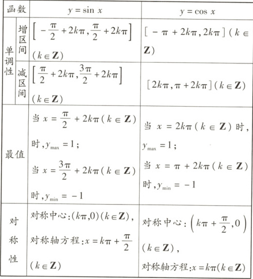 | $\sin x$ | $0$ | $1$ | $0$ | $-1$ | $0$ |