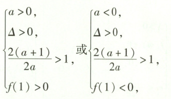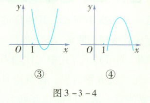 (2) 方程两根都大于 $1$ 时, $f(x) = ax^2 - 2(a + 1)x + a - 1$ 对应的图像只有如图 3-3-4③④两种情况。