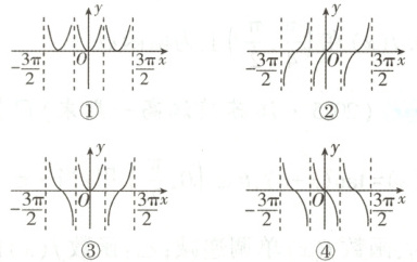 1.C 解析:$y = |\tan x|$对应的图象为①,$y = \tan x$对应的图象为②,$y = \tan(-x)$对应的图象为④,$y = \tan|x|$对应的图象为③。故选C。
