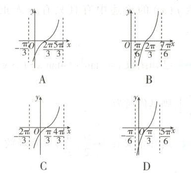 7. (多选)已知函数$ f(x) = \tan\left(x + \dfrac{2\pi}{3}\right) $,若$ f(x) $在区间$ (0,m) $内单调递增,则$ m $的可能取值是(