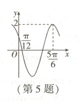 5.ACD 解析:对于A选项,由题图可知,$A=f(x)_{\max}=2$,函数$f(x)$的最小正周期$T$满足$\frac{3T}{4}=\frac{5\pi}{6}-\frac{\pi}{12}=\frac{3\pi}{4}$,可得$T=\pi$,则$\omega=\frac{2\pi}{T}=2$,则$f(x)=2\cos\left(2x+\frac{\pi}{3}\right)$,A对;