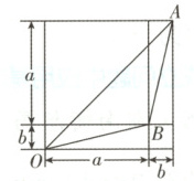 3. 如图,正方形的边长为$a + b(a > 0,b > 0)$,请利用$OA\leq OB + BA$,写出一个简练优美的含有$a,b$的不等式: