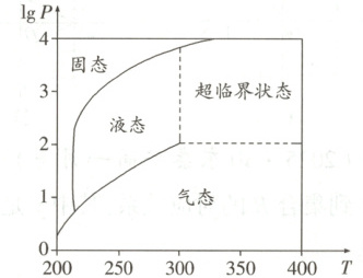 360,P=729时,2<\lg P<3,故此时二氧化碳处于超临界状