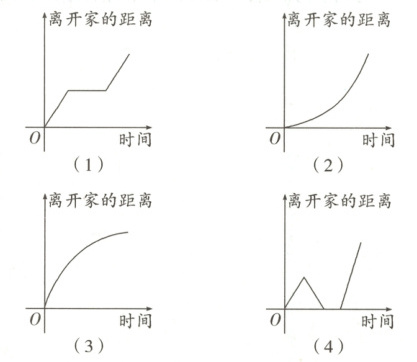 3.D 解析:①因为中途返回家中,所以离开家的距离先增大,后减小至0,中间保持一段时间,最后再增大,为题图