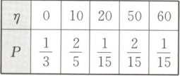 (1)$\because E(\eta)=0×\frac{1}{3}+10×\frac{2}{5}+20×\frac{1}{15}+50×\frac{2}{15}+60×\frac{1}{15}=16$,$\therefore D(\eta)=(0 - 16)^2×\frac{1}{3}+(10 - 16)^2×\frac{2}{5}+(20 - 16)^2×\frac{1}{15}+(50 - 16)^2×\frac{2}{15}+(60 - 16)^2×\frac{1}{15}=384$,$\therefore \sqrt{D(\eta)}=8\sqrt{6}$。