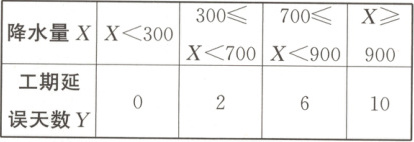 11. 根据以往的经验,某工程施工期间的降水量 $X$ (单位:$mm$)对工期的影响如下表所示.