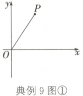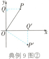 典例 9 如图①,在平面直角坐标系中,将点$P(2,3)$绕原点$O$按顺时针方向旋转$90^{\circ}$得到点$P'$,则点$P'$的坐标为()