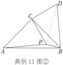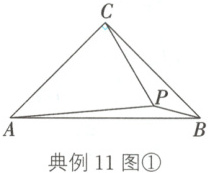 典例 11 如图①,在$\triangle ABC$中,$\angle ACB = 90^{\circ}$,$AC = BC$,$P$是$\triangle ABC$内一点,且$PA = 3$,$PC = 2$,$PB = 1$.