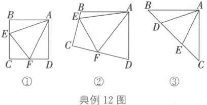 (1)原题:如图①,点$E$,$F$分别在正方形$ABCD$的边$BC$,$CD$上,$\angle EAF = 45^{\circ}$,连接$EF$,则$EF = BE + DF$,请给出证明过程.