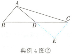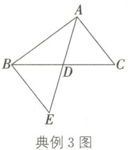 典例 3 如图,D 是 $\triangle ABC$ 的边 BC 的中点,连接 AD 并延长到点 E,使 $DE = AD$,连接 BE.