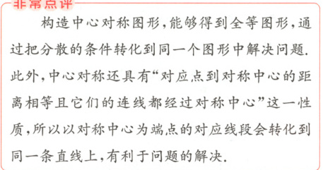 解析:将 $\triangle ABD$ 绕点 D 旋转 $180^{\circ}$ 得到 $\triangle ECD$,从而 $AE = 2AD = 12$. 由勾股定理的逆定理可判定 $\angle E = 90^{\circ}$,最后利用勾股定理解决问题.