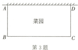 3. (2023·天津)如图,要围一个矩形菜园 $ ABCD $,其中一边 $ AD $ 靠墙,且 $ AD $ 的长不能超过 $ 26m $,其余的三边 $ AB $,$ BC $,$ CD $ 用篱笆围成,且这三边的和为 $ 40m $。有下列结论:① $ AB $ 的长可以为 $ 6m $;② $ AB $ 的长有两个不同的值满足菜园 $ ABCD $ 的面积为 $ 192m^{2} $;③ 菜园 $ ABCD $ 的面积最大为 $ 200m^{2} $。其中,正确结论的个数是(